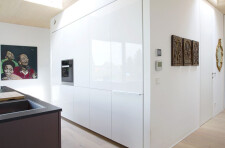 The inside blends seamlessly with the terrace, so the living area expands during the summer months. Else, the perfectly barrier-free home is, as the designer says “it’s as small as possible, and as big as necessary,” as the couple plans to spend there the autumn of their lives. Franz Karner describes the house as a one-room venue consisting of different zones equipped with built-in furniture. A carpenter by first training, he did draw every corner of the house.