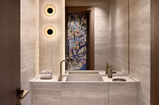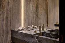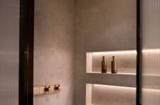 The idea of "separate homes under one roof" informed the design direction throughout. Most notably in the basement, which is conceived as a distinct, urban realm —an intentional departure from the softer ambience above. Polished microtopping, wooden panelling, and a vibrant material palette create an atmosphere that is tactile and expressive, lending contrast to the calm, tonal upper levels.