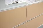 Furniture Linoleum is renowned for its elegance and durability, radiating high quality and finesse. Furniture Linoleum delivers a combination of a satin matt surface with a warm, fine texture creating interior furniture with a truly distinctive, genuinely individual look and feel that really is unlike any other surface material available. The natural character of Furniture Linoleum means that the material achieves a beautiful patina over time.