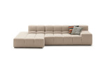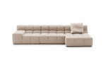 It was 2005, and the designer Patricia Urquiola, sand: “I wanted to tare a new look at capitonné and Chesterfield styles, with a special reinterpretations of 1960s and 1970s, wich I love”. An expression of the Chesterfield and capitonné style, Tufty-Time modernises them with a free and casual lifestyle. The system finds effective answers to the themes of modularity, comfort and removable covers by forming the various elements that create traditional linear sofas, corner sofas, peninsula-shaped compositions and island elements allowing 360-degree seating. The upholstery in fabric or leather is subdivided into large squares that are joined by pleats, perforated in the leather version.